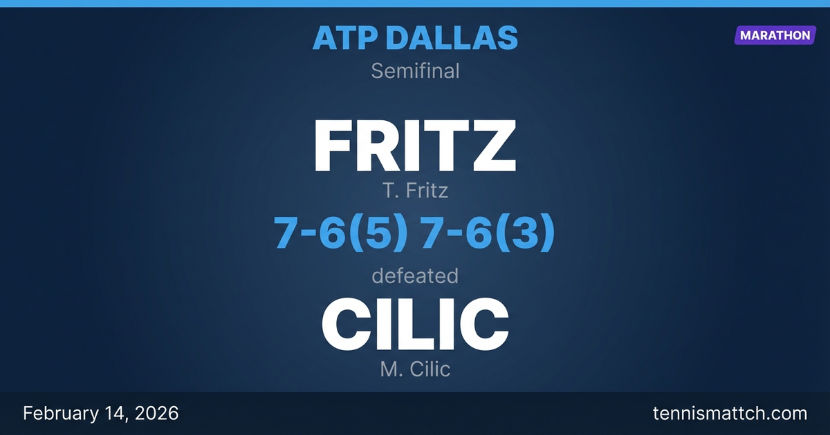 Taylor Fritz outlasted Marin Cilic 7-6(5), 7-6(3) in a gripping ATP Dallas semifinal on February 14, 2026, advancing to the final without losing serve. The match featured no service breaks across two sets, with Fritz proving sharper in both tiebreaks to seal victory in straight sets.