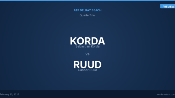 Sebastian Korda defeats Casper Ruud 4-6, 6-2, 6-2 in the ATP Delray Beach quarterfinals, firing 45 winners including 10 aces to overturn…